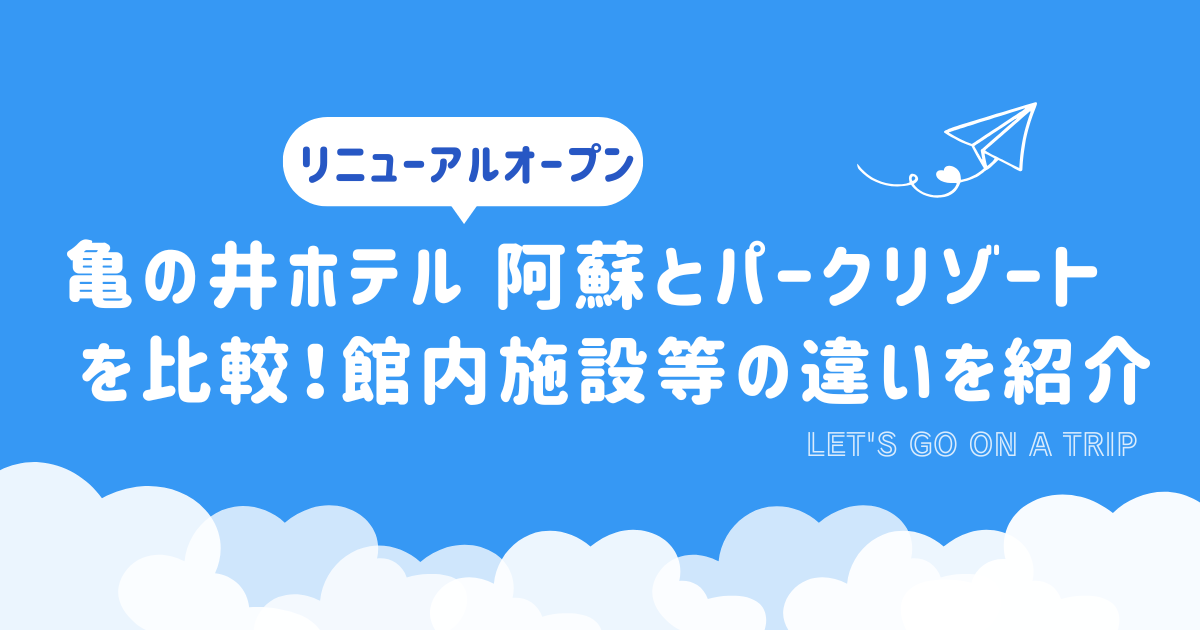 阿蘇エリアにある「亀の井ホテル 阿蘇」と「亀の井ホテル 阿蘇パークリゾート」の違いについてご紹介します。